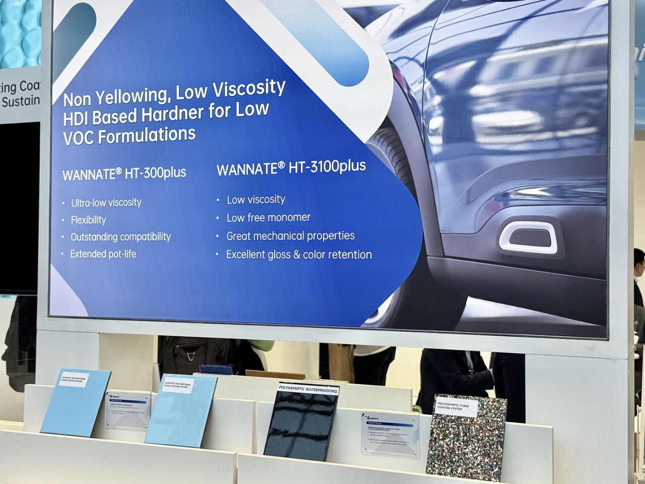 There are several high-performance isocyanate curing agents that meet market demands for environmental protection and efficiency. The low-viscosity products—WANNATE® HT-300 plus, WANNATE® HT-3100 plus, and WANNATE® HB-200—reduce VOC emissions while significantly improving application efficiency. The fast-drying type—WANNATE® IT-170B/S—features excellent chemical resistance and fast-drying properties, making it suitable for automotive, refinish, and industrial coatings. It helps customers shorten drying times and reduce energy consumption. The blocked type—WANNATE® HTBL/ITBL—offers outstanding weather and chemical resistance, making it ideal for coil coatings and metal baking paints. Especially, the ITBL product is FDA-certified for use in food-contact applications.