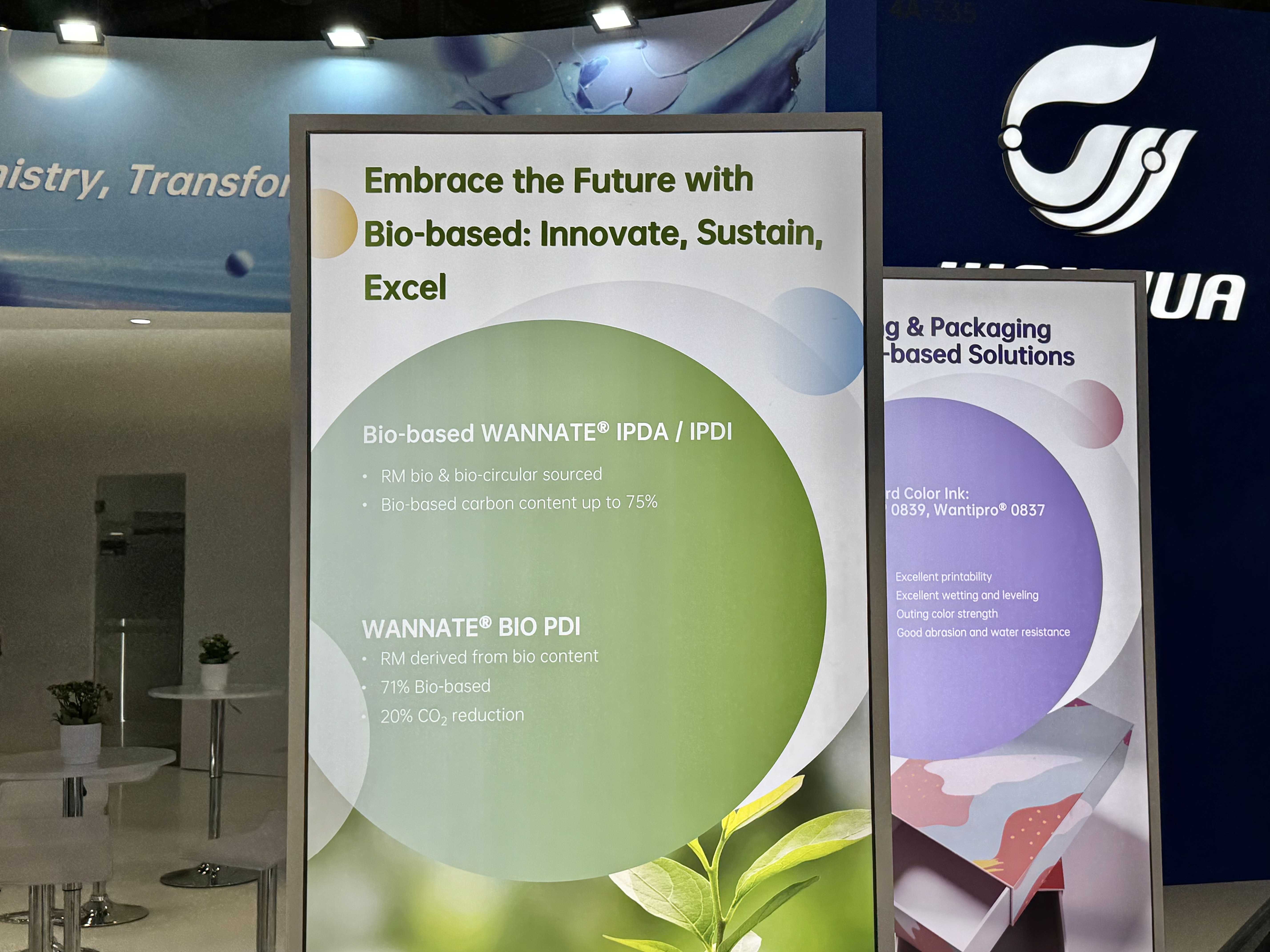 Wanhua Chemical desires to developing sustainable materials to reduce environmental impact and support the entire industry chain in reducing carbon emissions. The biobased PDI, derived from biomass lysine, has a biobased carbon content of over 71%, reducing CO? emissions by 20% compared to traditional isocyanates while maintaining excellent yellowing resistance and flexibility. The high-biobased content wood furniture coating emulsion Lacper® 4605 breaks through the previous 30-40% technical barrier for biobased content, meanwhile, balancing appearance, anti-stacking, and performance characteristics.